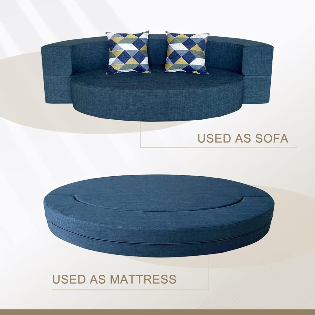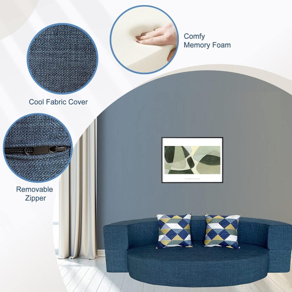 ANONER Stylish Sofa Bed Memory Foam with 2 Pillows Fold Out Futon Sleeper Chair Couch for Livingroom Guest Bed Washable Cover Dark Blue3. Convenience at its Best: Washable Cover and Pillows